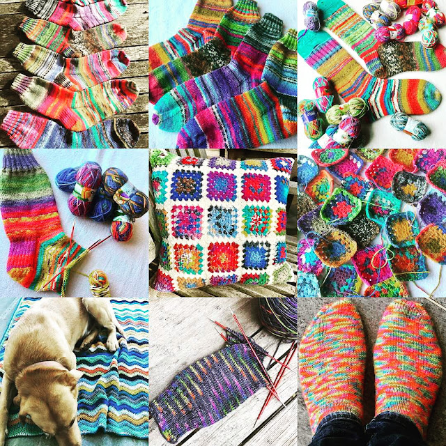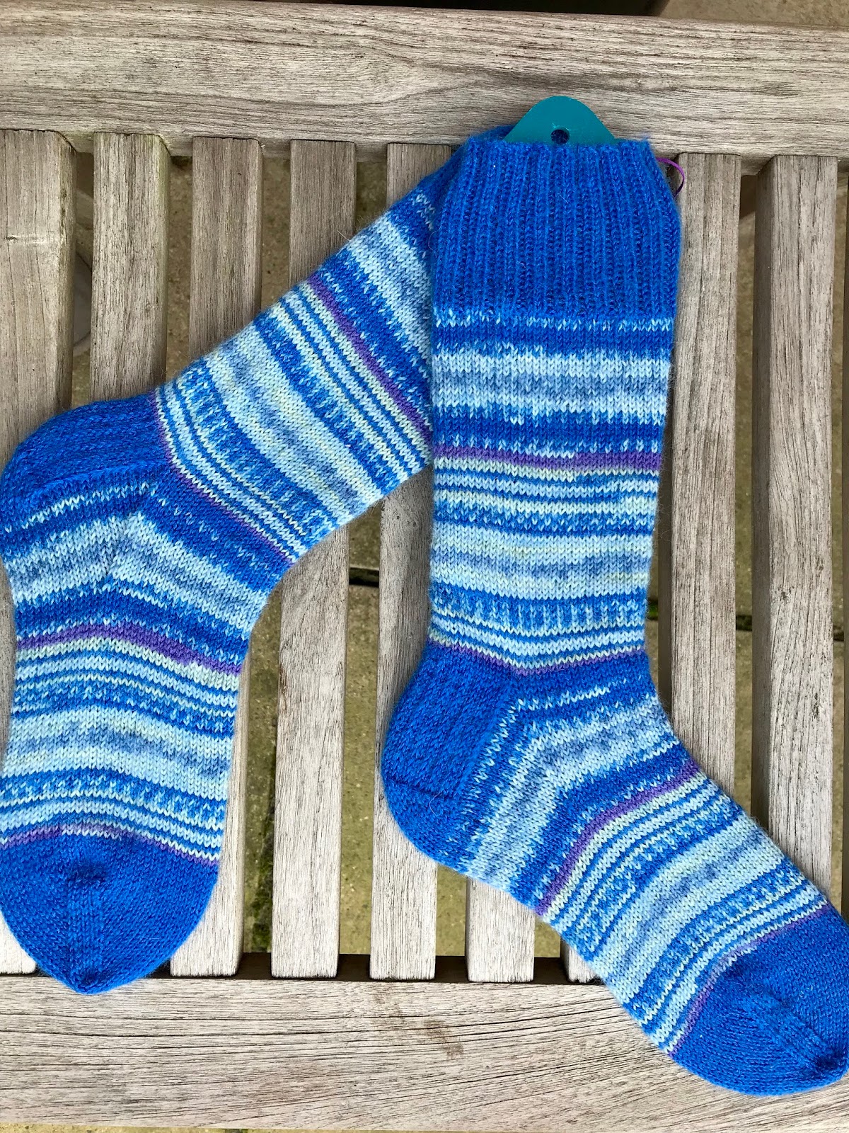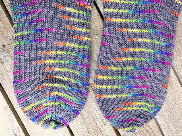 These beauties are knit using Stylecraft 'Head Over Heels Boho' yarn in colourway Neva. I love them so much and found it hard to part with them this afternoon, as they were carefully wrapped in readiness for the Post Office tomorrow. I just love the bold striping and gorgeousness of the colour combo. It's the first time I've used a Stylecraft sock yarn and I have to say I have been pleasantly surprised. My eldest daughter has requested a pair in the same colourway, but she may have to wait for Christmas! ;-)